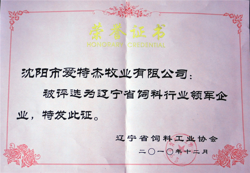 10年遼寧省飼料行業(yè)領(lǐng)軍企業(yè)