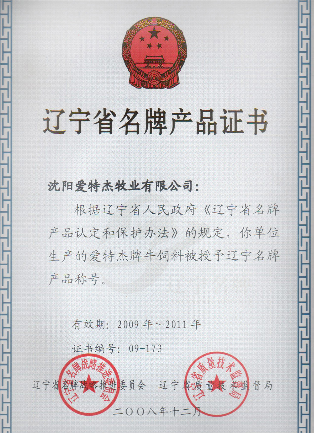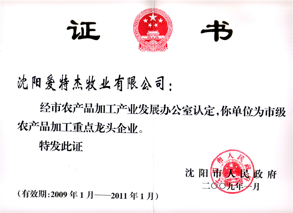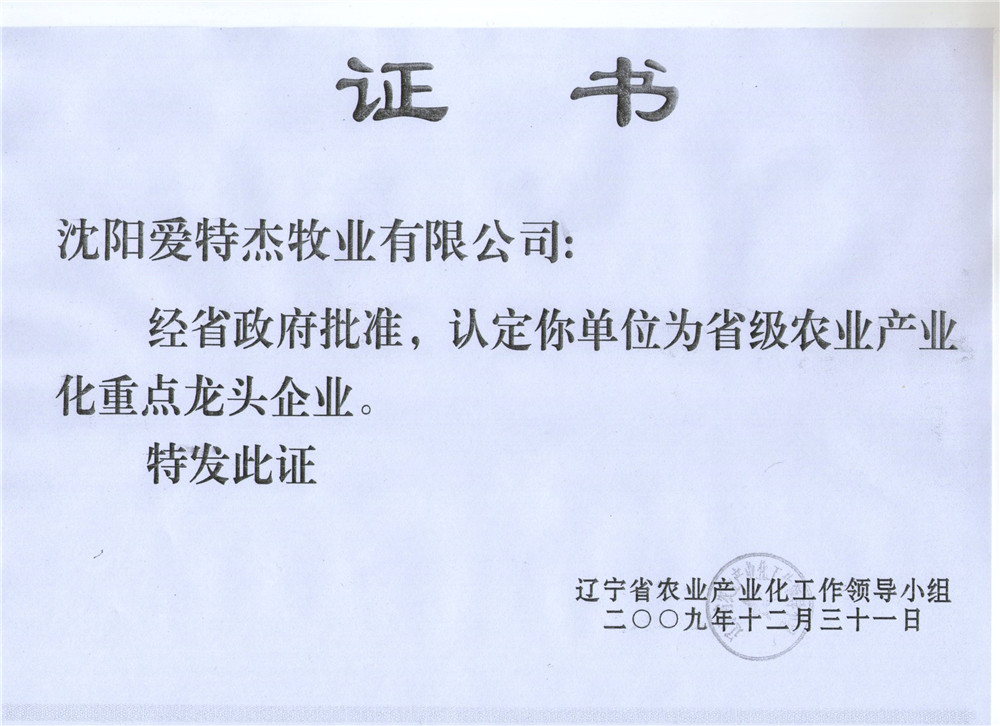 09年省重點龍頭企業(yè)證書